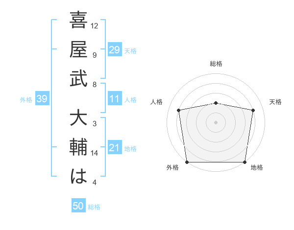喜屋武 大輔はさんを姓名の画数から五運を鑑定