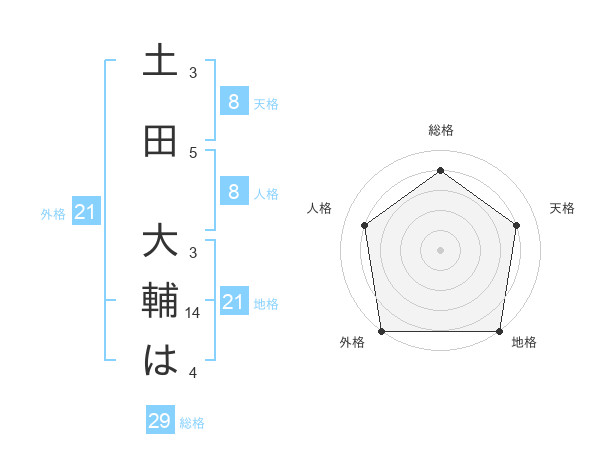 土田 大輔はさんを姓名の画数から五運を鑑定