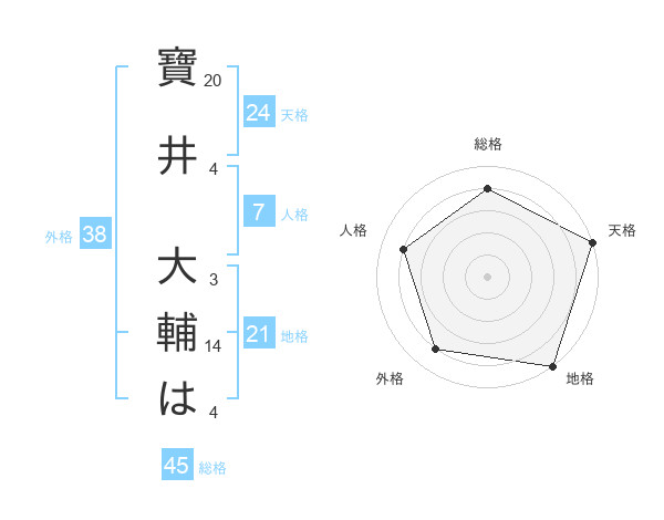 寶井 大輔はさんの総格は45画の4点!