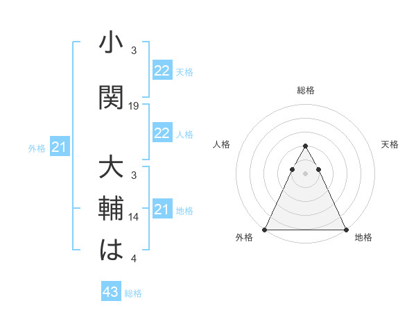 小関 大輔はさんを姓名の画数から五運を鑑定