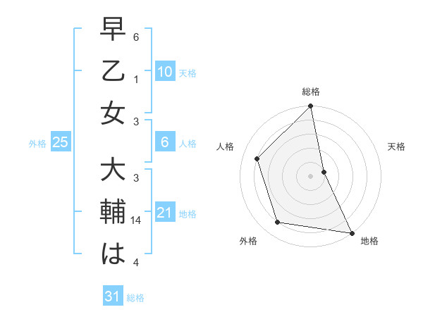 早乙女 大輔はさんを姓名の画数から五運を鑑定
