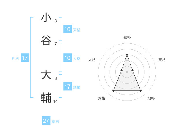 小谷 大輔さんを姓名の画数から五運を鑑定