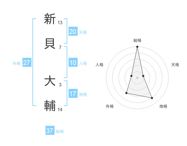新貝 大輔さんの総格は37画の5点!