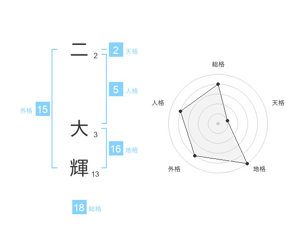 二 大輝さんを姓名の画数から五運を鑑定