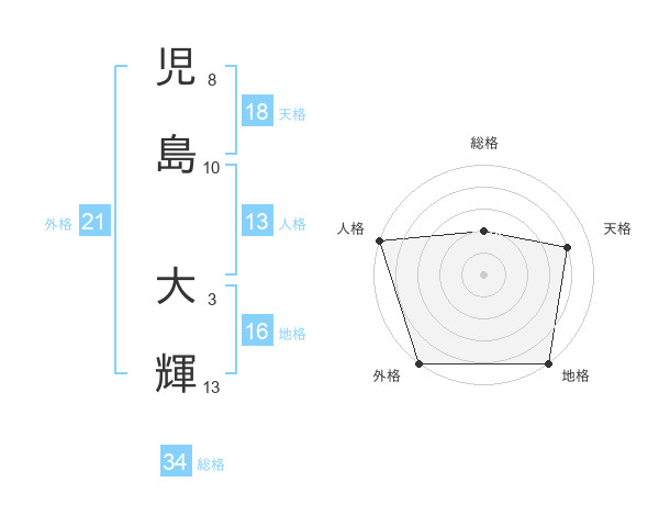 児島 大輝さんの外格は21画の5点!