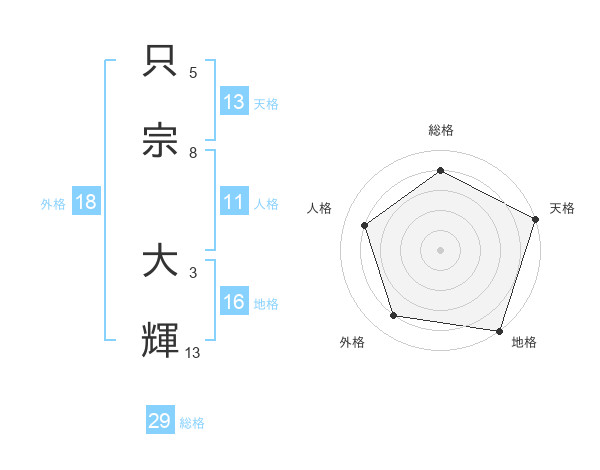 只宗 大輝さんを姓名の画数から五運を鑑定