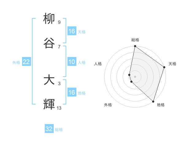 柳谷 大輝さんの天格は16画の5点!
