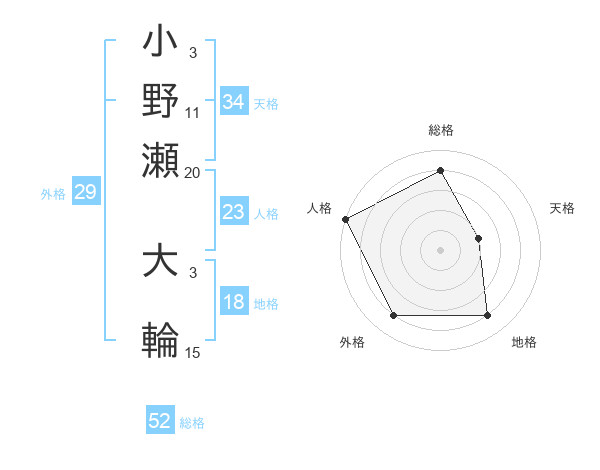 小野瀬 大輪さんを姓名の画数から五運を鑑定