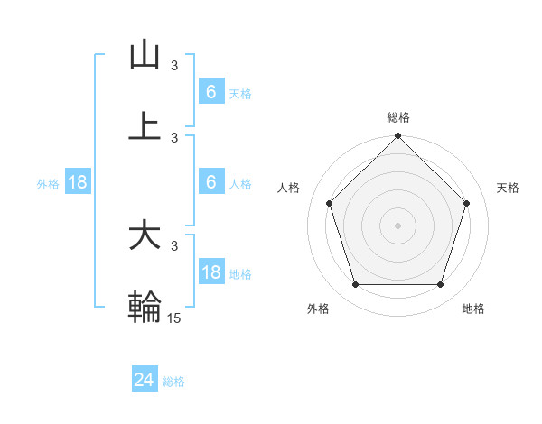 山上 大輪さんの総格は24画の5点!