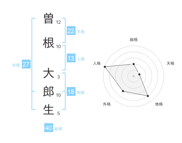 曽根 大郎生さんを姓名の画数から五運を鑑定