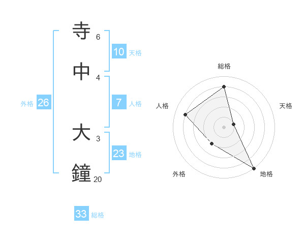 寺中 大鐘さんの総格は33画の4点!