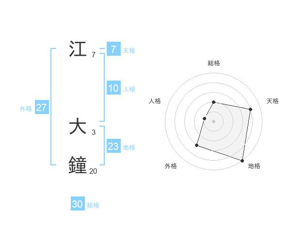 江 大鐘さんの総格は30画の2点!