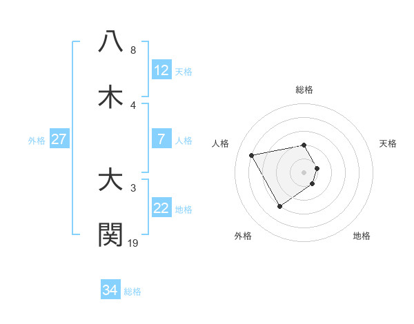 八木 大関さんの地格は22画の1点!