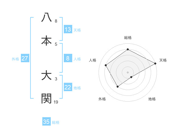 八本 大関さんの総格は35画の4点!