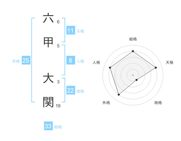 六甲 大関さんの総格は33画の4点!