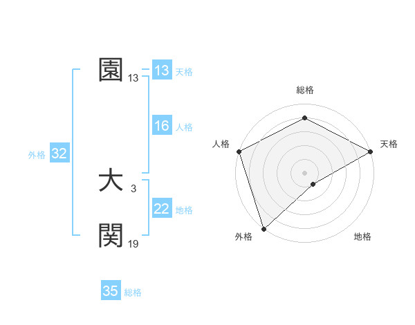 園 大関さんの外格は32画の5点!