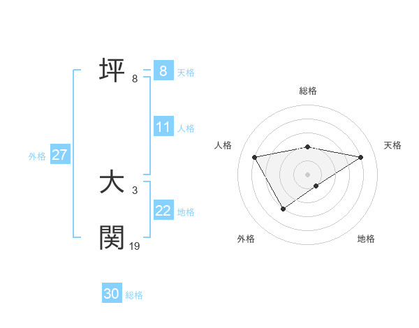 坪 大関さんの地格は22画の1点!