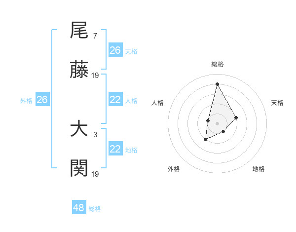尾藤 大関さんの地格は22画の1点!