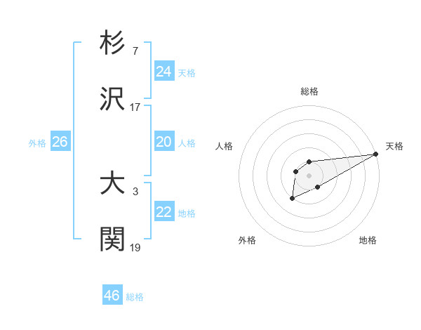 杉沢 大関さんを姓名の画数から五運を鑑定