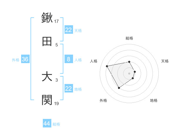鍬田 大関さんを姓名の画数から五運を鑑定