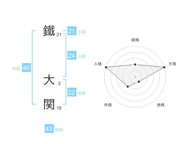 鐵 大関さんの総格は43画の2点!