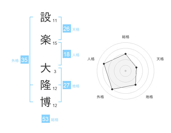 設楽 大隆博さんの総格は53画の3点!