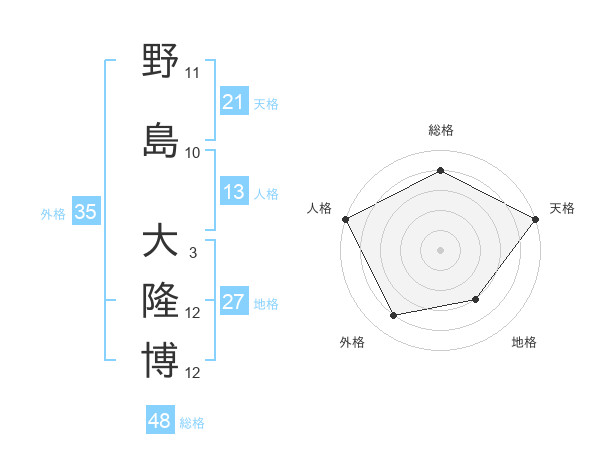 野島 大隆博さんを姓名の画数から五運を鑑定