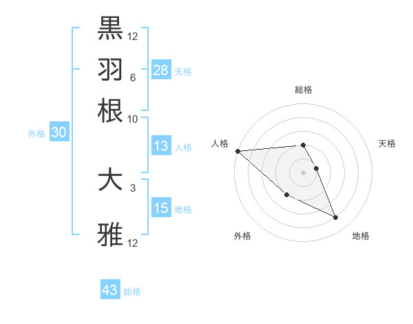 黒羽根 大雅さんの総格は43画の2点!
