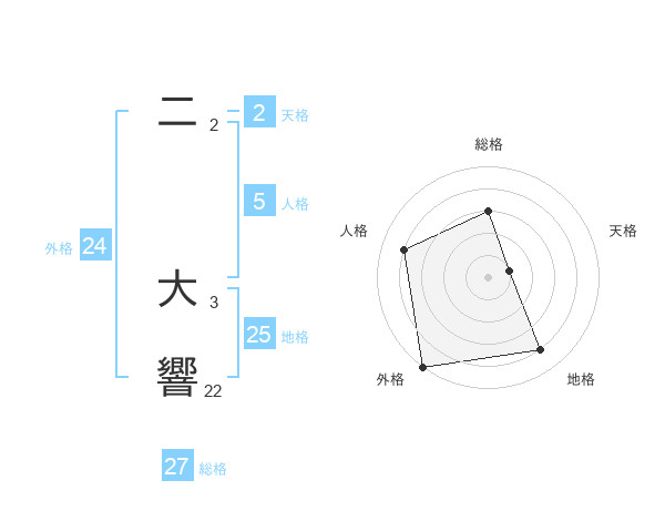 二 大響さんの外格は24画の5点!