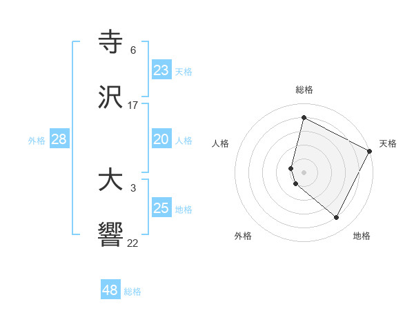 寺沢 大響さんの天格は23画の5点!