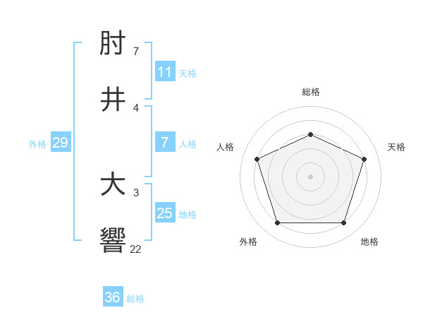 肘井 大響さんの天格は11画の4点!