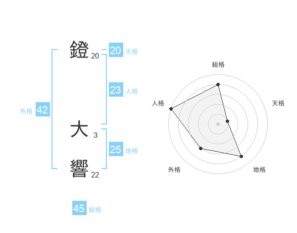 鐙 大響さんの総格は45画の4点!