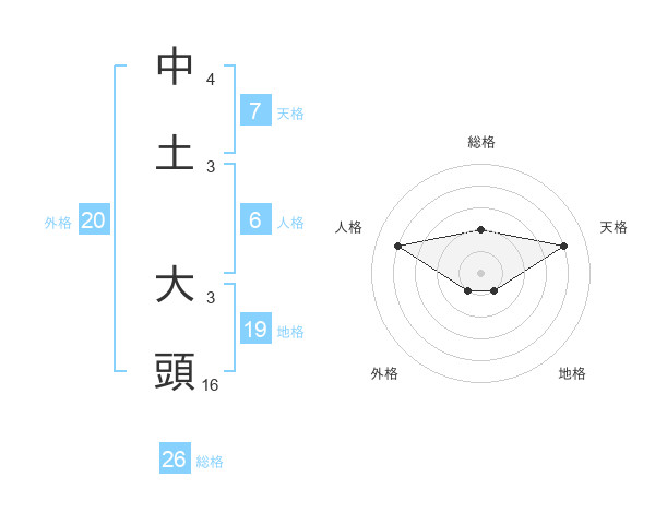 中土 大頭さんの総格は26画の2点!