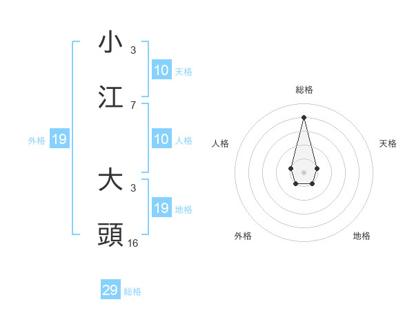 小江 大頭さんの総格は29画の4点!