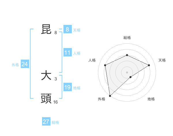 昆 大頭さんの総格は27画の3点!