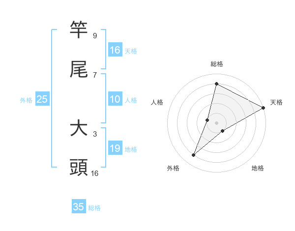 竿尾 大頭さんを姓名の画数から五運を鑑定
