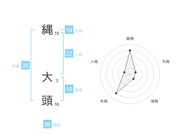 縄 大頭さんの総格は38画の4点!