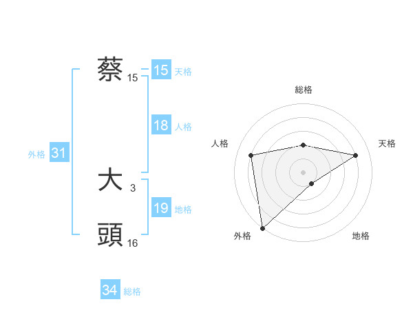 蔡 大頭さんの外格は31画の5点!