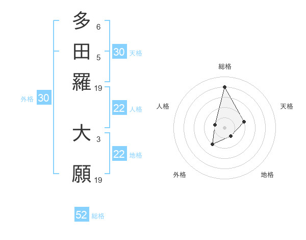 多田羅 大願さんの総格は52画の4点!