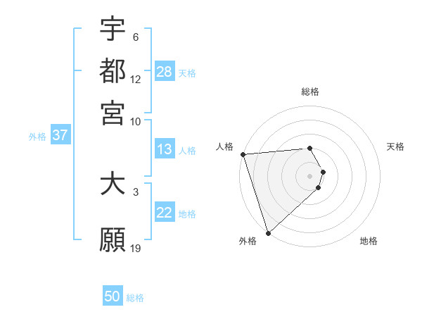 宇都宮 大願さんを姓名の画数から五運を鑑定