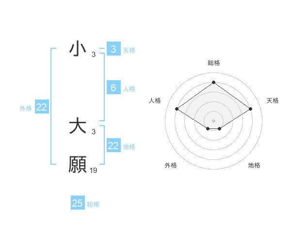 小 大願さんの総格は25画の4点!