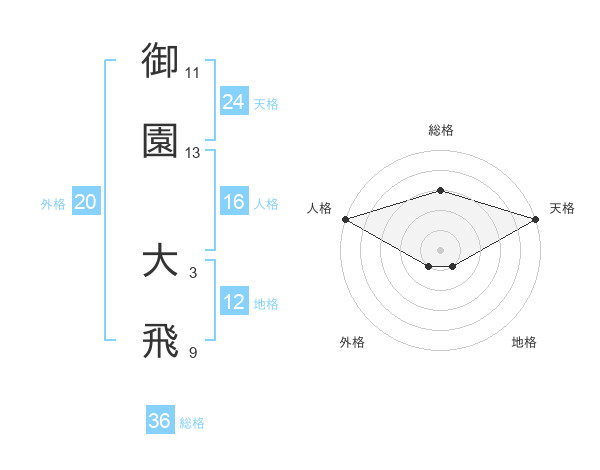 御園 大飛さんの天格は24画の5点!