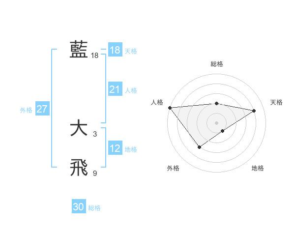 藍 大飛さんの総格は30画の2点!