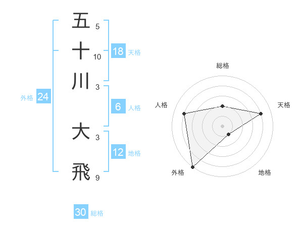 五十川 大飛さんを姓名の画数から五運を鑑定