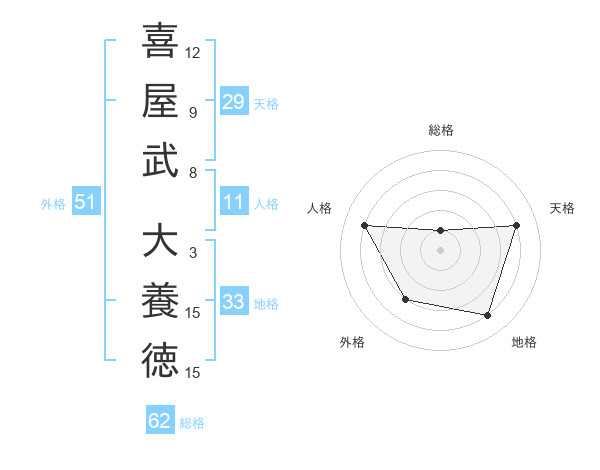 喜屋武 大養徳さんを姓名の画数から五運を鑑定