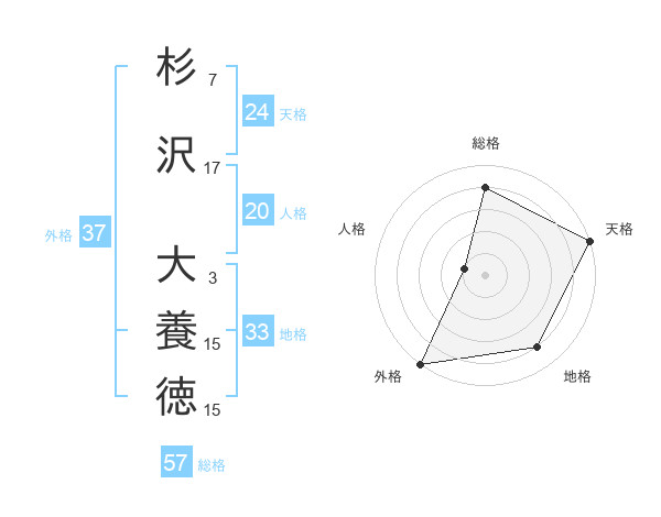 杉沢 大養徳さんを姓名の画数から五運を鑑定