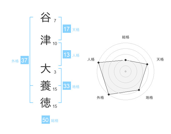 谷津 大養徳さんを姓名の画数から五運を鑑定
