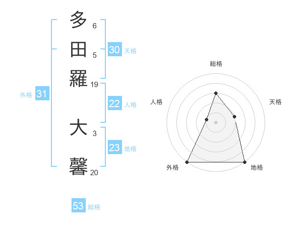 多田羅 大馨さんの総格は53画の3点!