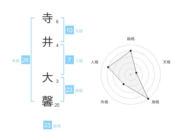 寺井 大馨さんを姓名の画数から五運を鑑定