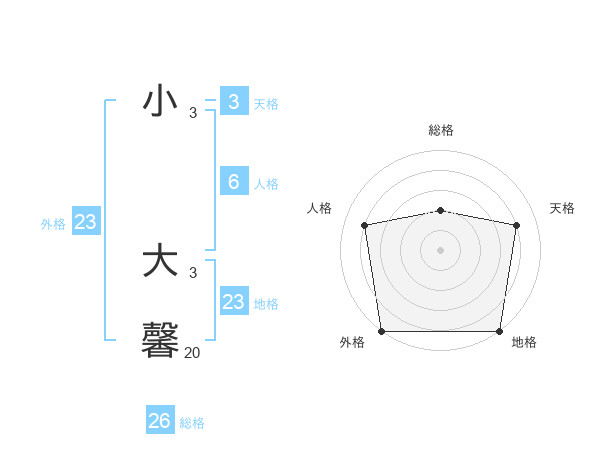 小 大馨さんの外格は23画の5点!